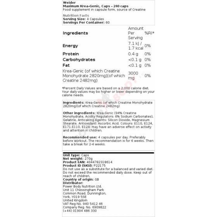 Maximum Krea-Genic Weider Weider